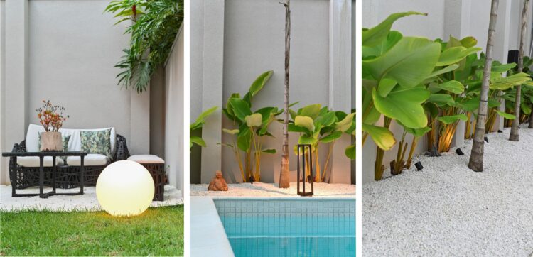 Por fim, a iluminação também deve ser pensada para jardins e áreas de lazer, principalmente para a realização de eventos noturnos como encontros ou festas. É necessário ter cuidado na escolha dos artigos que necessitam ter índices de proteção a adequados para cada situação. Para se ter uma ideia, produtos com IP65 são resistentes à poeira e aos respingos d’água, IP66 suportam jatos d’água e IP67 resistem à imersão temporária.