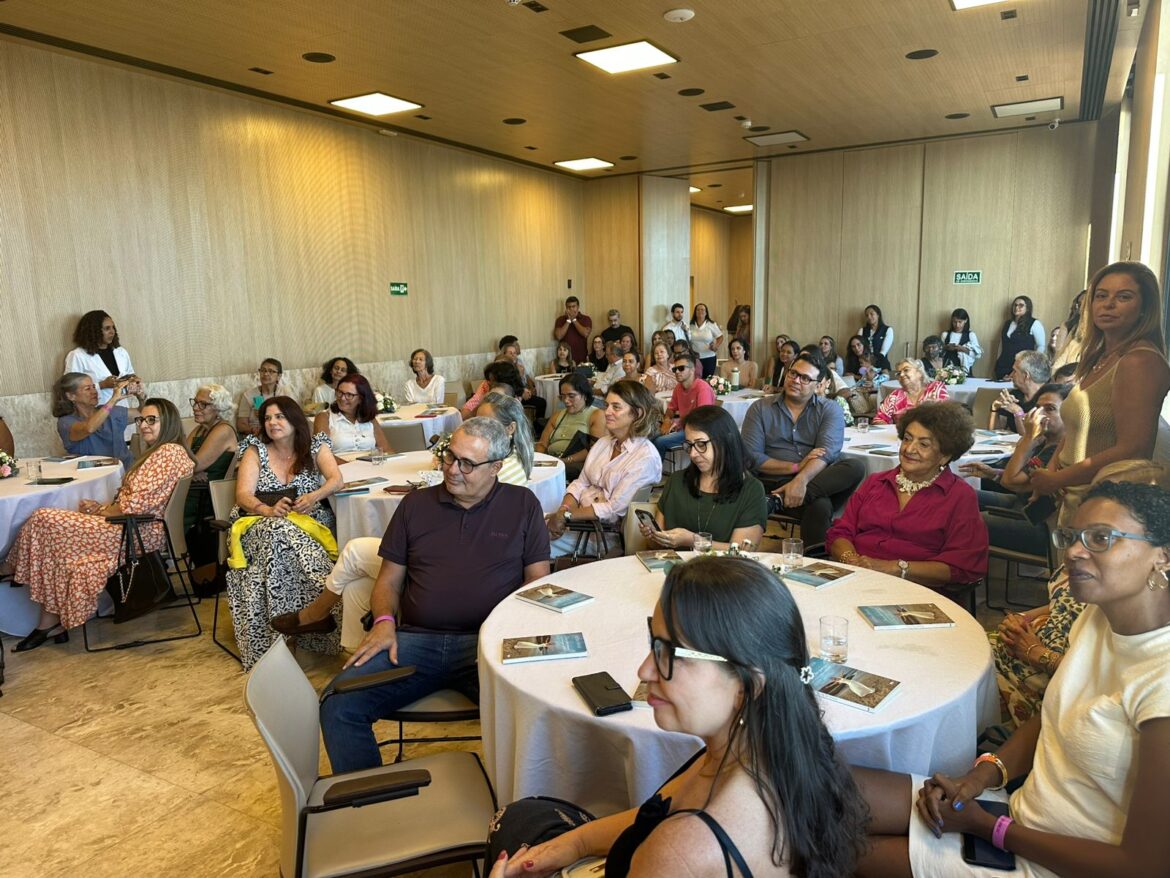 A atriz e humorista Heloisa Périssé sensibilizou e divertiu o público durante a divulgação do livro “Cheia de Graça: Uma jornada de humor, amor e cura”, realizado nesta terça-feira (11), em Salvador, no auditório da unidade Ondina. O evento, promovido pela Oncoclínicas, na Bahia, reuniu pacientes oncológicos e médicos da unidade Ondina, em uma tarde para celebrar os cinco anos de cura da atriz.