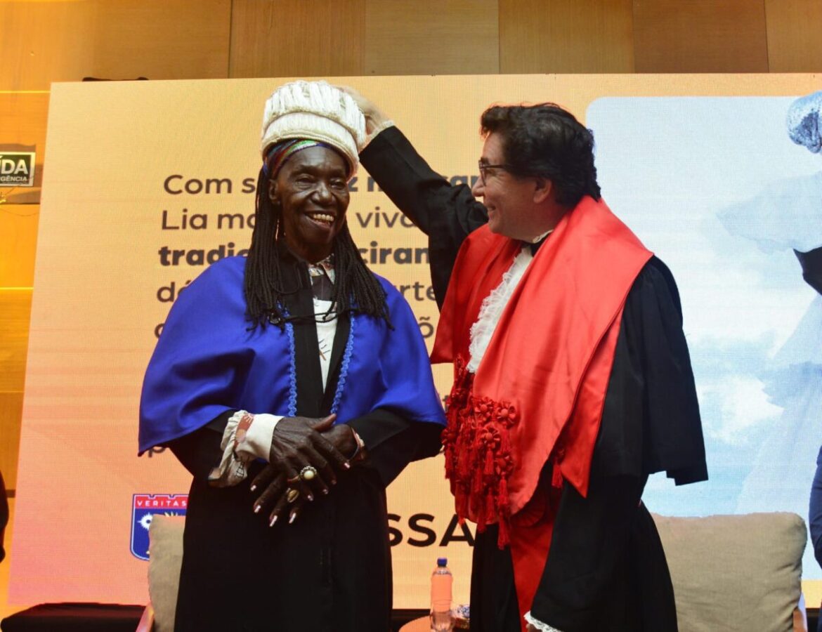 Lia de Itamaracá recebeu, nesta sexta-feira (21), o título de Doutor Honoris Causa pelo UNINASSAU – Centro Universitário Maurício de Nassau. A “rainha da ciranda”, de 81 anos, foi titulada durante uma sessão no Auditório Capiba, localizado no Bloco C da Instituição de Ensino Superior. A cerimônia foi comandada pelo presidente do grupo Ser Educacional, mantenedor da UNINASSAU, Jânyo Diniz.