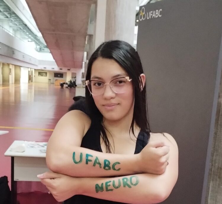 Julia na matrícula do curso na Universidade Federal do ABC