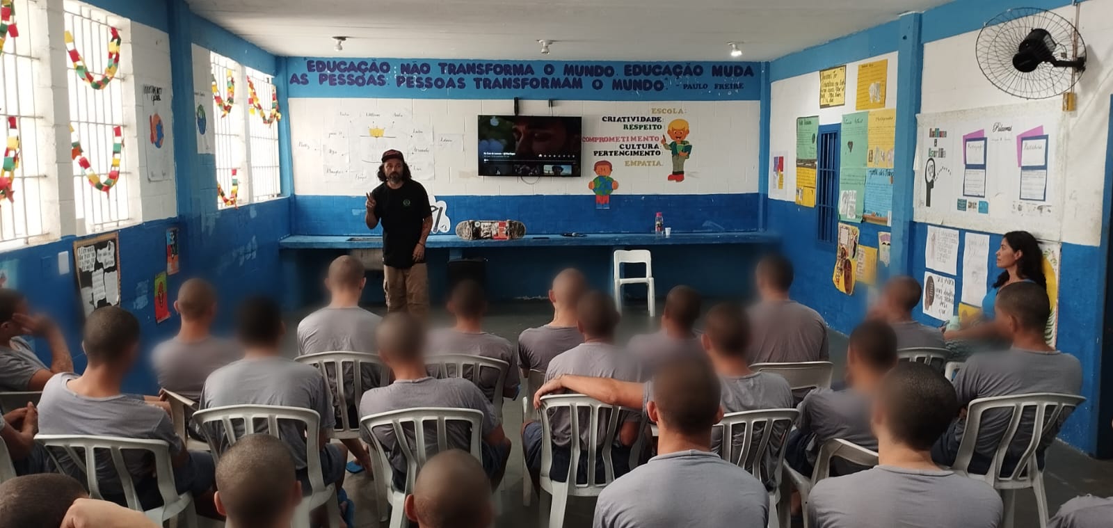 A primeira sessão aconteceu na última quarta-feira (22/01), com cerca de 30 participantes. Durante 1h30, Vitor compartilhou sua história de vida, músicas e a paixão pelo skate, destacando como é possível ressignificar traumas e encontrar forças para superar adversidades. No dia seguinte (23/01), os menores realizaram uma atividade artística de desenho e escrita.
