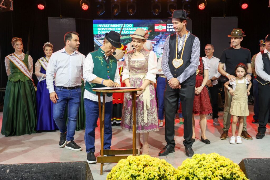 Durante o evento, o governador destacou o papel das festividades no calendário estadual e a importância do turismo para a economia local: “É uma das festas tradicionais do calendário estadual de Santa Catarina, que alegram a primavera. Então, temos muitas festas como esta, que ressaltam os valores e a cultura de tantos povos que foram os grandes desbravadores de Santa Catarina. O estado prestigia, apoia, está junto, e isso faz parte dos investimentos em turismo. As pessoas precisam vir, curtir, comemorar porque isso movimenta a economia, a cidade e o Estado crescem. E a gente se esforça muito para dar infraestrutura, que é o que estamos fazendo.”